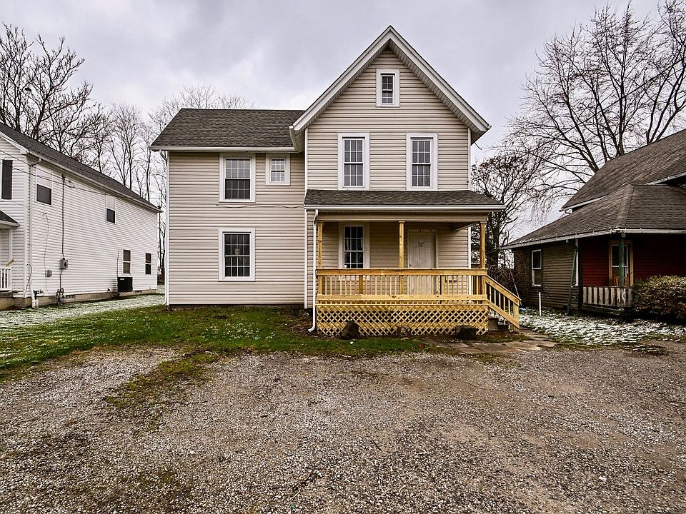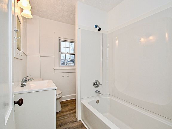 Newly remodeled kitchen, bathroom. New flooring throughout and freshly painted. 1st floor laundry. Space for a possible 4th bedroom. Detached garage Tenants responsible for all utilities. Off street parking