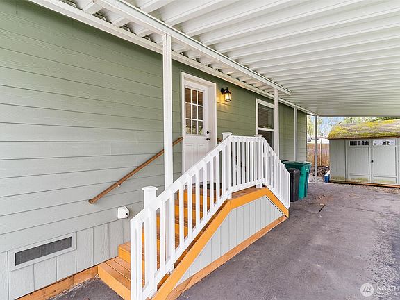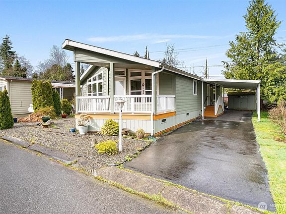 Welcome to Mariner Village Park, a gated 55+ community in South Everett. This spacious 2 bed, 2 bath double-wide home features an open-concept layout with all the light and a stunning Gourmet kitchen with a walk-in pantry that opens to the great room and dining room. High ceilings, abundant windows & skylights flood the home with natural light. Enjoy the architectural details like tiered ceiling and arched entry. The primary bedroom features a walk-in closet and ensuite bathroom with double vanity. Office space available, perfect if you work from home. Fresh new paint throughout the home. Relax on the covered deck after a long day. Includes a double car carport & exterior storage shed. Close to shopping & restaurants and all. Welcome Home!