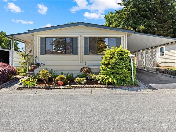 Beautiful Mariner Village 55+ community home! Enjoy 3 bedrooms and 2 bathrooms, including a huge primary suite. This home backs to a greenbelt in this quiet community. New vinyl plank flooring and paint throughout! There are vaulted ceilings, a private deck off the kitchen, and a newer shed(big enough for arts and crafts) to round this one out! Easy access to amenities and I-5, just a few blocks away. You will find pride in ownership of this home and the community around you.