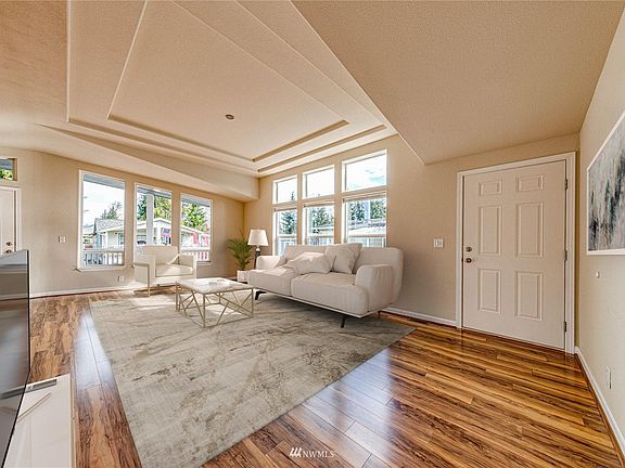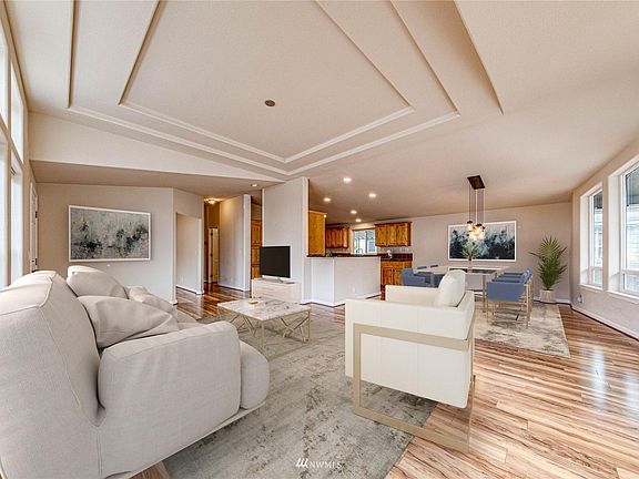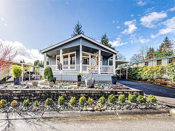 Better than new double wide in 55+ gated community of Mariner Village. Immaculate 3 Bed, 2 bath home with nearly 1,650 square feet, spacious living room, dining room, family room, vaulted ceilings, ample light, and double pane windows. Large primary bedroom with walk-in closet and beautiful master bath. Located on a quiet lot with a large covered porch complete with ramps for accessibility, immaculately landscaped, and backing up to a green space allowing for more privacy. All appliances stay! The community features RV parking and a clubhouse with a pool table, kitchen, BBQs & exercise room. Quick access to shopping, public parks, restaurants, theatres, and I-5. Pre-inspection attached to listing.