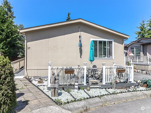 Welcome to this beautifully maintained, 2009 built, 3 bedroom 2 bathroom home in Mariner Village Park! This move in ready home has been updated with all new laminate flooring throughout, interior paint, upgraded kitchen with new countertops and a private, fully fenced patio area with a fire pit! Vaulted ceilings throughout the home provide a very spacious feel, large room sizes along with a private shed offer plenty of options for storage & a heat pump to keep cool on those hot summer days, this house truly has it all! Private security gate upon entering the neighborhood provides security & peace of mind. Located within minutes of shopping, multiple restaurants & I-5 you truly won't want to miss this one! Mariner Village is a 55+ community.