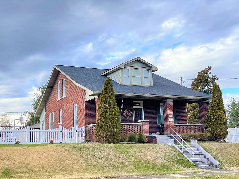 Nestled in the Historic River Town of Tell City, this updated Craftsman Style Bungalow is the perfect mix of Original Character and Modern Conveniences. The Large Covered Front Porch Welcomes Guests in to the Home. Main level features spacious Front Living Room, Central Dining Room with Original Glass Paned French Doors, Updated Kitchen with Classic Cabinetry, Gas Stove, Stainless Refrigerator & Brand New High End "Cove" Dishwasher. Main Level Master Suite includes Double Closets & Recently Remodeled Oversized Master Bath with Walk-in Shower, Custom Tile Work, Extra Deep Soaker Tub. Laundry & Second Full Bathroom located on the Main Level off the back entrance. The Original Wood Staircase leads to the Spacious Second Story. Full Bath features Claw Foot Style Soaking Tub, You will find Two Bedrooms with Large Oversized Walk-In Closet Areas, Plus a Office/3 Bedroom Area. The Home has Beautiful Original Woodwork throughout, Wide Trim and Baseboards, New Historic Style Hardwood Floors were recently installed throughout Main Level, Newer Furnace & Air Condition, Water Heater, Roof has been Recently Replaced. TALL CEILINGS give the home a spacious feel. Outside features a Huge Concrete Back Patio/Basketball Court. Commercial Grade Basketball Goal & Swing Set to be Included with the Home. The yard is Extra Large with 3 Full City Lots all Recently Fenced with Vinyl Privacy Fence. Plus, a Two Car Garage with Bonus Storage Room for Equipment. Call Today to see this beautiful Property where you will enjoy all the conveniences of town but the space of living in the country.