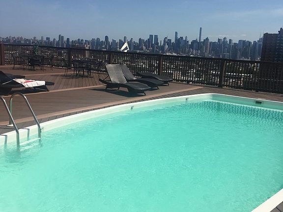 Welcome Home - just in time to enjoy Summer fun at the rooftop pool. Luxury awaits at the stylish and modern full amenity Altessa. This renovated and spacious 2 bedroom 2 bathroom unit boasts amazing sunset views from every room. Open kitchen features stainless steel appliances and plenty of space for the dining room area. This apt has hardwood floors throughout and W/D in unit. The Altessa amenities offer a rooftop pool overlooking Manhattan, 24 hour doorman, residents only gym, wet and dry sauna, media room with pool table, plush couches and 3D projector, complimentary shuttle to Hoboken Path. One car garage space is an additional $150 p/m 12 Month lease .