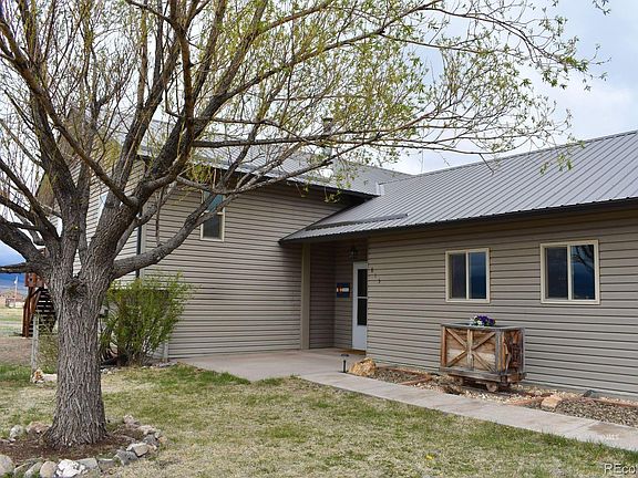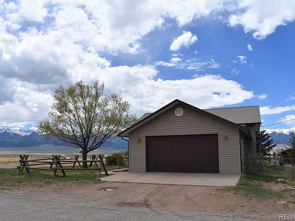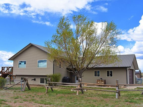 Very well maintained, spacious home in the town of Silver Cliff. This lovely home is located on a large parcel consisting of 4 town lots (1/2 acre) with spectacular views of the Sangre De Cristo Mountains. Several large parcels surround this property providing for a open feel and unobstructed views! The town walking trail is just a block away and the Silver Cliff park and the dog park is also within walking distance making for a choice location! The home has been lovingly cared for and is move in ready. A great floor plan with a large living room spaces on each level as well as 4 bedrooms and 2-1/2 bathrooms. The open floor plan offers a bright sunny kitchen with stainless steel appliances and quartz counter tops and kitchen island for extra storage. A deck off the dining area provides a great space to entertain or relax and enjoy stunning mountain views! The kitchen is open to the living room making a great space to gather family and friends. Spacious primary bedroom with ensuite bathroom on the main level. Downstairs you will find a large family room with pellet stove, 2 bedrooms, a full bathroom, and laundry room. 2 car attached garage and large backyard with garden & 2 sheds.