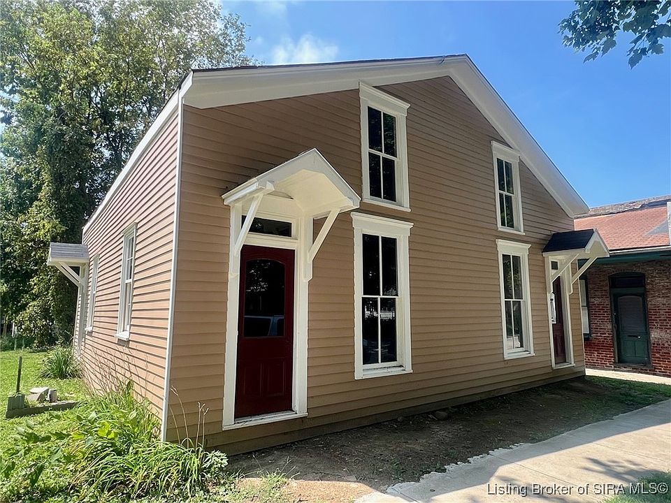 A principled preservation project! Take part in this one, and you’ll reap the benefits of a legacy. This 1860 duplex has been renovated at its exterior so that its protective covenants, that are attached in perpetuity and held by Indiana Landmarks, are for maintaining the facade and structure, but leave you with a blank slate inside! The placement of this property is wonderful, being central to town and only a block and a half from the riverfront. The interior of this structure is, again, a blank slate- meaning gutted. With siding being restored or replaced as needed, and the home receiving all new windows, you may decide to make this back into a duplex or build it out for single-family use. The interior options are all yours!