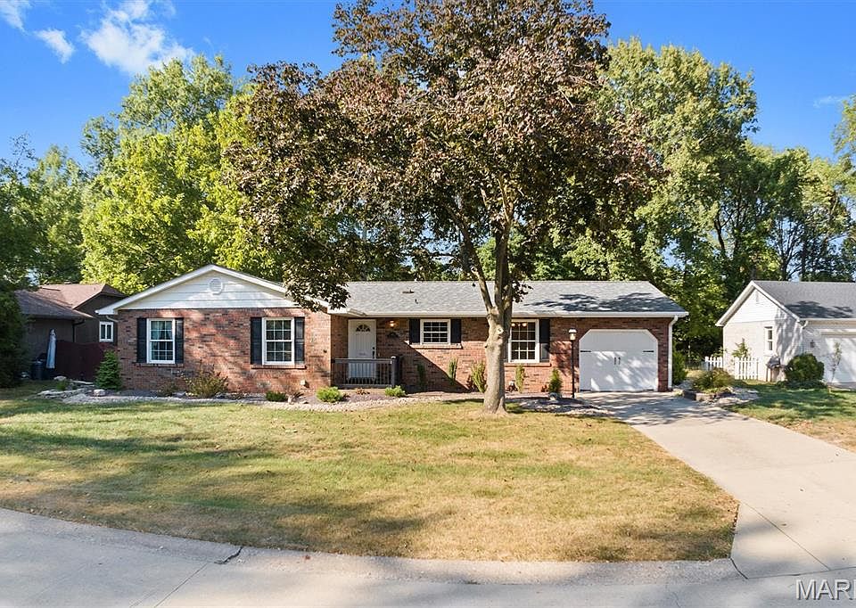 ONE Owner Ranch tucked away in the back of Montclaire Meadows in the heart of Edwardsville is MOVE IN ready! Foyer entry, Kitchen featuring quartz countertops, breakfast room & newer cafe fridge. Spacious LR & DR; slider leads to your All Season Sunroom & patio overlooking lovely private wooded yard! Main floor laundry w/cabinetry, finished lower level offers 4th BR (non conforming), huge cedar lined walk-in closet for off season storage & 1/2 bath consisting of toilet & utility sink. Rest of unfinished basement is a blank slate! Newer Prof Landscaped front & Side yard w/walkway to the back patio. Well maintained; Andersen Renewal Replacement windows, Roof 2020, New Carpet Main Floor & Fresh paint in main Living areas! Close to restaurants, schools & bike trail!