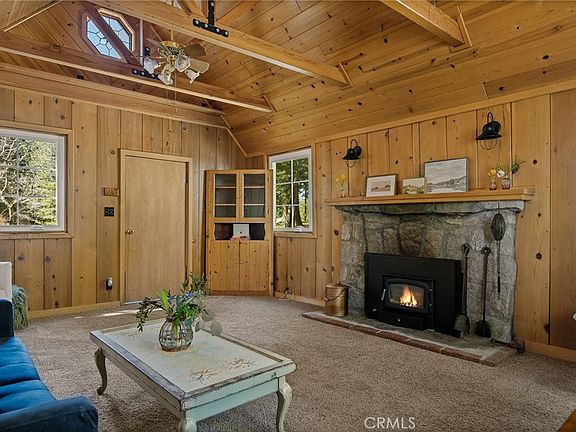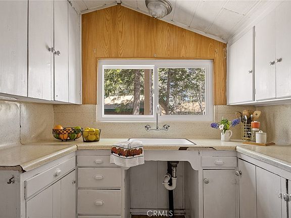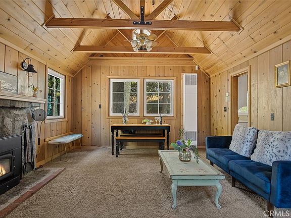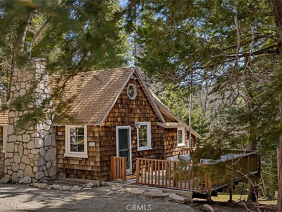 100 year old story book cabin surrounded by Dogwoods and Greenspace. This 1920's cabin will have you stepping back in time the moment you drive up. Pull up into your near level, near flat parking and be greeted by an abundance of dogwood trees, pine trees, oak trees, blooming daffodils and more. This home is located in Burnt Mill Canyon Land Association and surrounded by acres of greenspace that provides ample privacy, room to explore the forest, private trails, all while located close to Lake Arrowhead Village and highway 18. The outside greets you with a large stone fireplace, shake siding, front deck to absorb the forest, and almost level entrance. One inside you'll be greeted with vaulted ceilings and woodwork throughout, along with plenty of windows to allow the outside light in, providing both morning and evening light. One the main floor you will find a large living space, main floor bedroom, kitchen, bathroom, and second bedroom or living space that leaves you feeling like you are in a treehouse lined with windows. Downstairs is another bedrooms, full bath, walk in closet and laundry room. Out back you'll find a patio space, fenced yard, and shed for ample storage. Do not let this one get away, the old vintage charm will capture your heart and potentially get you lost in time.