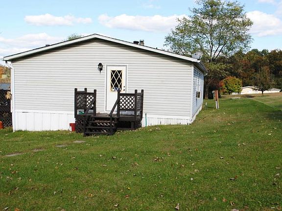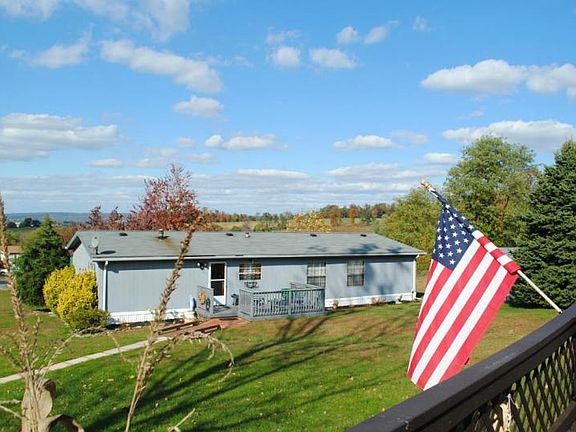 Check out the view from the front deck! Large lot! Shed is large enough for a workshop. 1989 Fleetwood 28x40 VIN PAFLJ22AB00380CC. Priced to sell... LESS than Assessment Value. Within the past year, owner has replaced ROOF on shed and house, rebuilt oil furnace, new gas & oil lines, new refrigerator. Stone fireplace can be wood or gas. Pets under 25 lbs. See 23 pics!