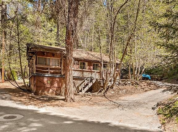 Drive down a long driveway and over a bridge with a seasonal stream and you'll find a charming 1925 original cabin on a large lot surrounded by beautiful flowering dogwood trees. The cabin is ready to move in and start enjoying the mountain lifestyle. Newer carpet w/ hardwood flooring underneath. Large kitchen and gorgeous original granite fireplace. The Lake Arrowhead Village is just minutes away. This cabin is located in Burnt Mill Canyon and very rare that one of the homes is available to make your own. Let the kids roam the forest without cars on this very private location Call with questions! Location Location Location!