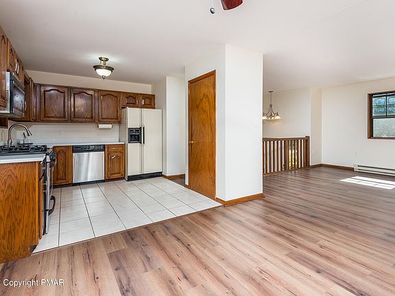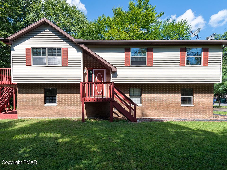Back on the Market! No fault of the Seller! Newly Updated 4 Bedroom 2 1/2 Baths Bi-Level home with Luxury Vinyl Flooring, Updated Bathrooms and New Appliances. The First Floor has an open Floorplan complete with Dining Area, Brick Fireplace and lots of Natural Light. The Fully Finished Basement has a Fireplace; Bedroom and Half Bathroom. Go Through the sliders to the Private Yard that Backs up to the State Game Lands for added Privacy. Home is Located in an amenity filled community complete with pools, beaches, lakes, basketball, tennis and more. Close to all Major Highways and Pocono Attractions. Make your Appointment Today!