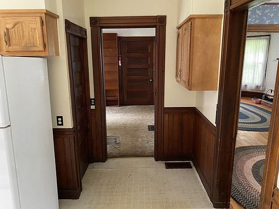 This 4-Bedroom 1.5 Bath Old Style Home is in great condition.sits on 5.4ac and owns behind 7 of the Abutting neighbors backyard to the River-has a large Barn front part converted into Garage-Home has all original woodwork throughout the House upstairs and down Hardwood under carpets on second floor-newer brick fireplace in Living Room-builtin cabinet in Dinning Room -large foyer-Family Room-nice enclosed front Porch Sun Room -On Village water with newer 1k Septic-New windows and Roof