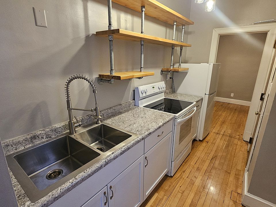Beautiful unit with a large bedroom with extra den, updated kitchen with open cabinets and off-street parking!