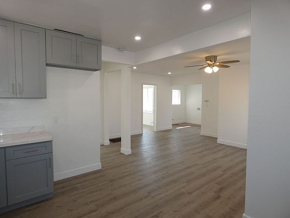 Coming soon! This beautifully remodeled 3-bedroom, 1-bath home features vinyl click flooring and fresh two-tone paint throughout. Enjoy a modern kitchen with quartz countertops, stylish cabinets, stainless steel gas stove, and overhead microwave. The bathroom includes a tub enclosure with ceramic tile, complemented by modern light fixtures and ceiling fans throughout. New blinds, a spacious yard, 2 parking spaces, and a 1-car garage complete this stunning home. Don't miss your chance to view this upgraded property!