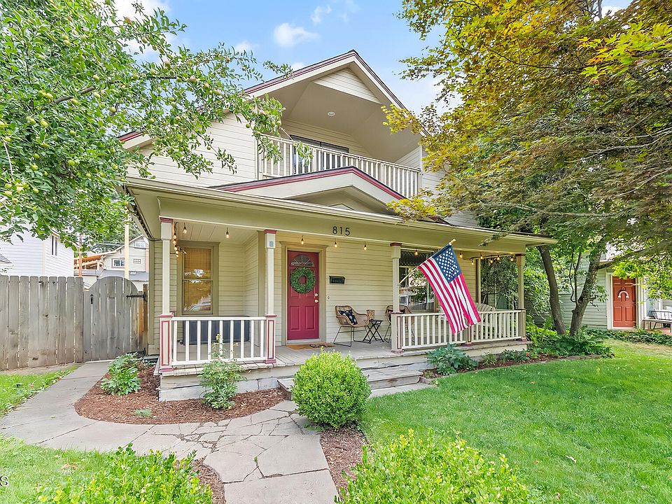 Welcome to this charming downtown home in the highly sought after Garden District, just 2 blocks from Sherman Ave! This home has character inside and out! High ceilings in the living room and dining room make the home feel spacious and open. This home boasts two primary bedroom suite options on both the main level and upstairs level. The kitchen includes a breakfast nook and large pantry, nearby a walk-in laundry room. In the backyard, you'll find a covered patio and side yard along with a detached 2-car garage with access to the alley. Don't miss out on seeing this home!