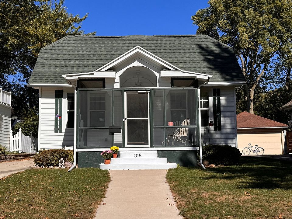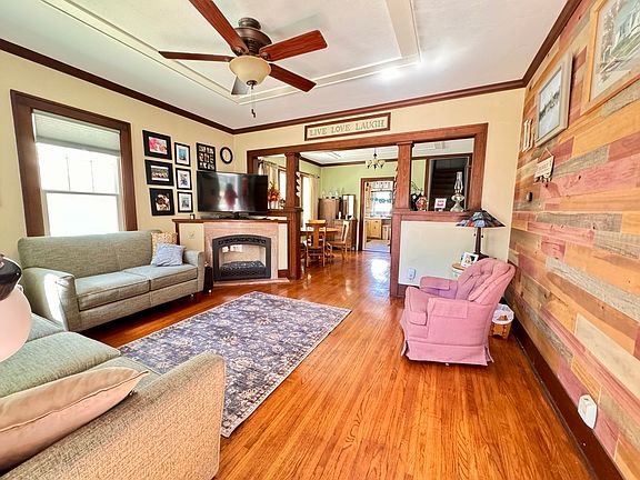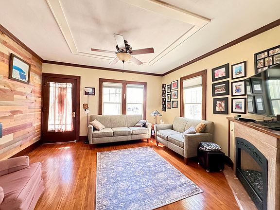 Attn: Highest and best offers by 3pm on Wednesday Oct 2,2024. Wonderfully maintained, charming 3 bedroom 2 bath home in a Superb Location! This home has been in the family since the 1920's! Watch the world go by on the screened in front porch or stay comfy in the window filled front living room with a gas direct vent fireplace, original hardwood floors and wood slat interest wall. The dining room is ready for the upcoming holiday seasons and the kitchen has plenty of cabinet storage and solid surface Corian counter tops. 2 bedrooms on the main floor both have hardwood floors and the main bedroom has an armoire that can stay with the home. The main floor Bathroom has a jetted tub, updated fixtures, fun wallpaper and painted sink base. Check the basket to find the secret laundry shoot. Upstairs finished space has many uses including a third bedroom. The basement has an additional 3/4 bath, laundry and possible bedroom. Out back there is a 3 car garage with enclosed storage area. There is a Huge cement patio area and newer cement drive. Hurry! This is certainly the place you want to call home.