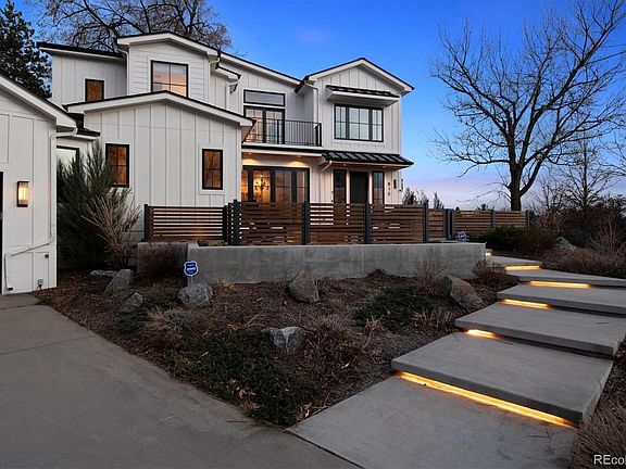This stunning luxury home, set on nearly an acre in the highly sought-after Westglow Farms neighborhood of Greenwood Village, was designed by a renowned Beverly Hills architect and completed in 2019. Inspired by the elegance of early 1900s farmhouse architecture, it offers breathtaking panoramic views of Pikes Peak and the entire Front Range, visible from the front patio, kitchen, main level, and the spacious master suite. The open-concept main floor features a chef’s kitchen with Miele and Sub-Zero appliances, a large island, and a butler’s pantry. European white oak wide-plank floors and rare level 5 finished walls flow seamlessly throughout the home, including into the basement. Main floor also includes three bedrooms, each with private outdoor access, and three luxurious bathrooms (two en-suite). Upstairs, the master suite is a true retreat, complete with a private balcony, a spa-like bathroom with a freestanding tub, marble shower with mountain views, and a custom walk-in closet. Restoration Hardware lighting, hardware, and vanities elevate the home’s sophisticated design. The property features four private outdoor living spaces, a beautifully landscaped, fully fenced yard, a three-car garage with attic storage, and private access to the Highline Canal. While the original home dates to 1958, it was completely rebuilt in 2019, preserving the charm of the basement while incorporating modern luxury and design throughout.