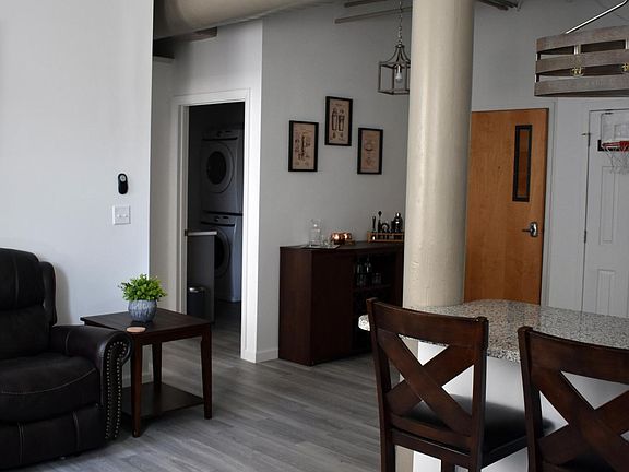 Recently updated one bedroom, one bathroom apartment located in historic downtown Manchester, NH. Welcome home to 815 Elm Street! Apartment is equipped with black kitchen appliances (refrigerator, microwave, stove/oven, dishwasher) and a garbage disposal, accompanied with granite countertops. Fresh, white-painted walls enhance the apartment's natural light complimenting the kitchen's crisp, gray cabinets. Living space has wood-look laminate flooring, window coverings, and ample closet space. Additional apartment amenities include full-size washer & dryer in unit, central air conditioning and heating, and separate 7x11 foot private storage area. Apartment is privately located in rear of building without adjacent residential tenants. Building is elevator-equipped. Utilities are included in rent except for internet. One (1) assigned on-site parking space is available at an additional cost of $125 per month Move-in ready on March 26,2025. For inquiries and to schedule a showing, please contact Philip. **Pictured furniture is privately owned and not included in apartment rental. Unit is for one (1) person occupancy only. Utilities are included in rent. One (1) assigned on-site parking space available at a monthly rate of $125. Building and unit is non-smoking, and pets are not permitted.