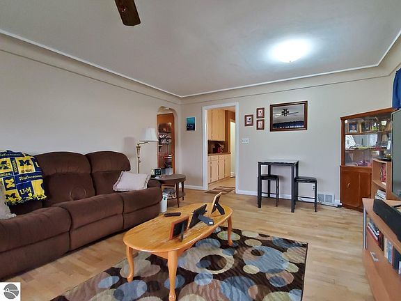 3BR, 1 bath ranch on a double lot with a full basement, and detached garage. The main floor has wood floors in the LR, hallway and under the carpeting in the BR's. Home warranty included. Great location, across from Euclid ballfields and a couple blocks from the Alma Riverwalk. Nice solid home.