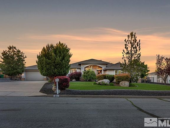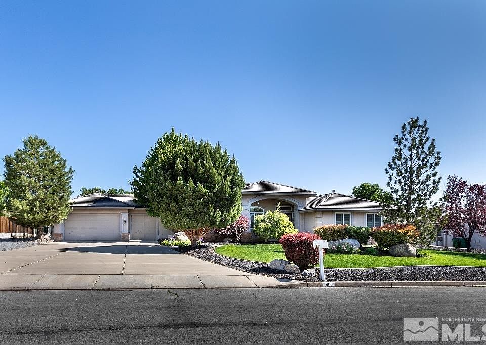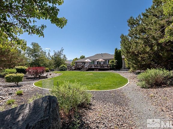 This immaculate single level home is delightful at every turn. Attractively set on 1 acre with wonderful large shade trees, lush verdant landscaping, a private rear yard with loads of room to build a shop, garage & possibly a Guest House. No HOA! The perfect kitchen, well designed, valuable counter & cabinet space, a pantry, all top notch! An Ideal large formal dining for those special gatherings. Comfortable & inviting, the great room is open and spacious for entertaining! Gleaming Hardwood Floors!, Your Primary Bedroom Suite is private, restful, spacious with access to your large private rear deck and superb yard! The floorplan was well thought out with dramatic volume ceiling height, recessed lighting, ceiling fans, loads of wall space for your art, a unique fireplace, stunning Harwood flooring, finished Triple Garage with extra storage, RV parking, lots of upgrades throughout and located in a wonderful neighborhood with wide streets, great shopping (Summit Mall), fine schools, hospitals and an easy picturesque drive to the Mount Rose Ski area and the Jewel o the Sierra "Lake Tahoe"! This home has No HOA! Come see this perfect residence and start the process of making this your perfect home!