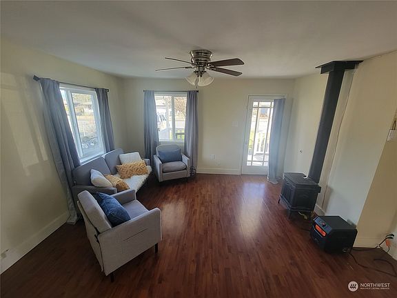Large covered front porch enters into this cute 3 bed, 1 bath 932 sf home that looks at Whitehorse Mountain from the back yard. Nice large kitchen and inviting layout with large master bedroom in rear and 2 bedrooms in front by the living room. Recent upgrades include: new paint inside & outside, new windows, new luxury vinyl flooring in the kitchen & laundry room, new countertops, new carpet in bedrooms, front covered porch railing, upgraded lighting, and many other upgrades. Fruit trees and garden space and rear alley entrance. Come relax in the private back yard and gaze at the amazing mountain views!