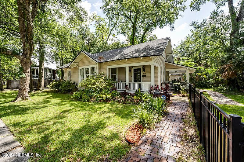 One of the most desirable homes in Murray Hill is officially on the market! This beautifully restored bungalow from 1917 is the perfect combination of original historic character and convenient modern improvements. This property greets you with a massive private lot, multiple porches, and established trees providing a true Southern feel when you arrive. As you enter, note the soaring vaulted ceilings, stunning French doors to a secondary porch, and the focal point brick fireplace making this room an ideal place to entertain. The original wrought iron spiral staircase still stands and has been reinforced with new railing. This leads you upstairs to an incredible flex space perfect for a guest suite, an office, or an additional living space and is complete with a renovated full bathroom. Head back down to find an original wide pocket door which leads you to the massive dining room with coffered ceilings. This will quickly become the gathering space for friends and holidays. The updated kitchen is bright and airy and boasts plenty of storage and stainless steel appliances. Washer/dryer area leads you to the side yard and driveway. Two well-sized bedrooms share a full bathroom, making for a convenient layout. An abundance of large original windows fill the home, allowing plenty of natural sunlight to pour right in. A shed in the backyard makes for the perfect spot for lawn tools and garden equipment. Just around the corner from all of the restaurants, shops, and happenings of Edgewood Ave.