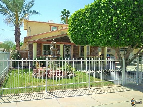 Nicely-maintained home in a well-established area of Calexico, less than half a block from SDSU-IV Campus. Some of the many home's features include: recently remodeled kitchen with new cabinetry, granite counter-tops, stainless steel gas range & automatic dishwasher, stackable washer/dryer combo, title and granite back-splash, stainless steel sinks with brushed-nickel faucets in kitchen & baths, reverse-osmosis water filtration system, granite counter-tops in bathrooms, double-pane energy-saving windows throughout, porcelain title shower/tub combo, two storage sheds with A/C wall unit, guest house detached from main house, front & back sprinklers with auto-timers, wrought-iron fence, custom entryway, working Spanish fountain, custom security doors, chandelier in dining room, among many other features that you must see for yourself. Lots of love & care has gone into this home and is just waiting for its next owners. Contact your realtor and make an appointment to see this beautiful home
