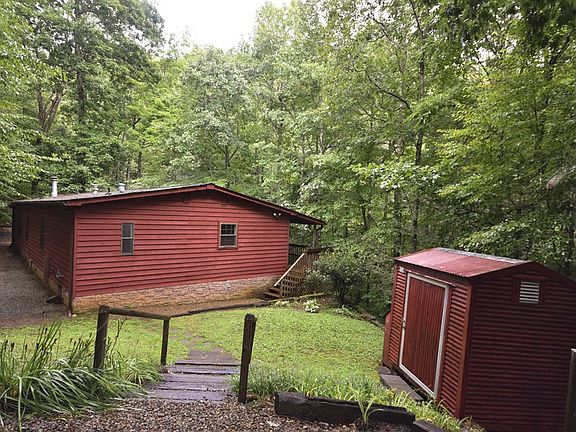 One of a kind property with AMAZING WATERFALL! This waterfall is over 70 feet and you can listen to it from your front porch. There's also a walk path to get almost to the base and then you have an area with bench and firepit room to enjoy the complete relaxation by the waterfall and let the busyness of life pass by. Inside the wood sided manufactured home you'll find 2 bedrooms, 2 full baths, family room and formal living room with stone wood burning fireplace, large kitchen, pantry and laundry area. Main level living and large wrapping deck. Private well and septic. Wall propane heaters. Hardwood floors inside, outside you'll find a storage building for yard tools and the roof was just replaced in the last 10 years. Don't miss a chance to view this lovely one of a kind setting and spacious open floor plan home.