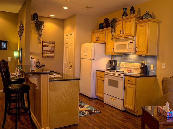 This walk-in (NO STAIRS) condo is a 2 bedroom, 2 bath is located in Holiday Hills Resort. The kitchen has granite counter tops and all new cabinets. The heat A/C unit is newer, new 80 gallon hot water tank. Wood floors throughout and carpet in the bedrooms, tile bathroom floors. Great view of the golf course from the back patio. Everything stays..All furniture, kitchen appliances and essentials, linens and wall hangings included. Has been on nightly rental with over 115 5 star reviews. Ready to go for nightly rental or move in ready. Brand new siding on the condo building and brand new roof. Please feel free to text or call me at 405-519-1306 with any questions you may have.