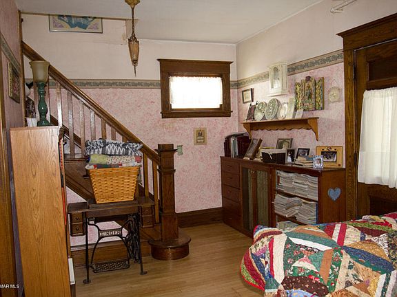 TURN OF THE CENTURY CHARMER! SHADY FRONT PORCH, 3 BEDMS, 3 BATHS, MAIN FLOOR FAM ROOM, HARDWOOD FLOORS ON BOTH FLOORS, OPEN OAK STAIRCASE, BUILT IN OAK HUTCH, NICE GAS FIREPLACE, PILLARS, LARGE KITCHEN, LOWER LEVEL IS UNFINISHED BUT HAS TILED FLOORS, PAINT ROOM, MAIN FLOOR LAUNDRY, GARAGE COULD FIT 2 SMALL CARS. 2 LARGE BEDMS WITH WI CLOSETS AND ANOTHER SMALLER BEDM.