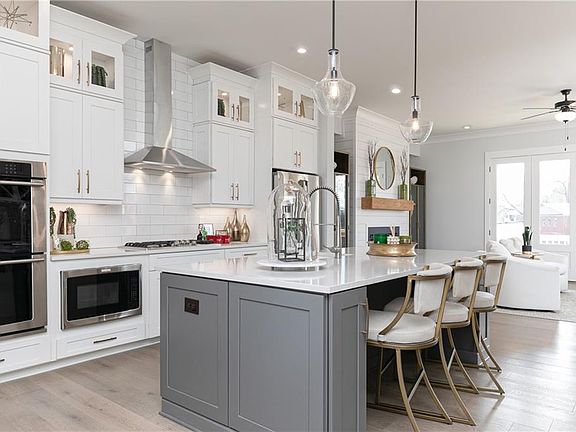 - Kitchen Features: Eat-in Kitchen, View to Family Room, Stone Counters, Kitchen Island, Pantry Walk-In, Cabinets White