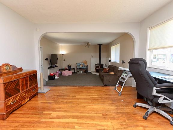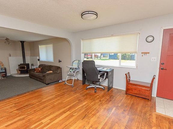Well maintained 3 bed, 1 bath located in quiet neighborhood. This home has had many updates over the last years including vinyl windows throughout, tile, oak floors and updated bathroom. The woodstove works great to heat the entire home. Open concept living with spacious kitchen and dining area. Completely fenced in backyard with back patio perfect for summer bbq. Double car garage with work bench and extra storage. Check out this move in ready home today!