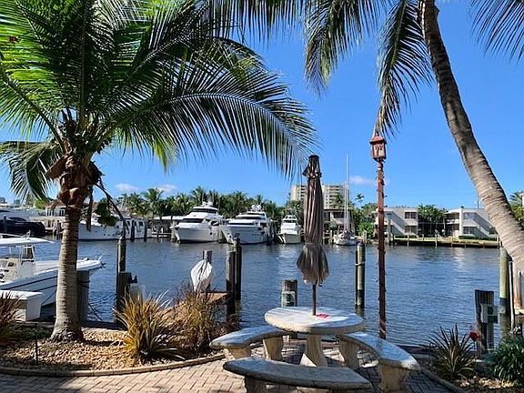 Newly priced! Tropical gardens surround this boutique, courtyard complex. This is a front, corner unit with views of the Middle River. Light and bright interior with nice finishes and upgrades. Property is being offered furnished, fully turnkey for annual rental with possible seasonal 6 month minimum. Sit by the pool and watch the daily parade of boats. Pet friendly. Laundry on site. Conveniently located in close proximity to the Galleria Mall shops and restaurants and approximately a mile to the beach. Boat dockage based on availability.