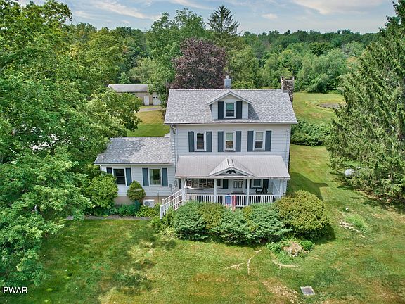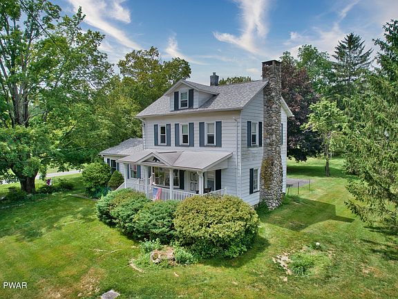 Nestled on 12.5 acres and across the street from Federal land sits this picturesque farmhouse. Take a walk by the 2 ponds and a gentle stream running along side the property, you will know that this home is for you! Enjoy the advantages of being in the clean and green program which offers the benefit of lower taxes! As you drive up, a welcoming covered porch makes you want to sit and enjoy the view. Enter through the EIK and notice the exposed rough cut lumber beams above, , a coal stove that may or may not stay....there is a bright and airy formal dining room with original HW flooring and built in shelves, LR has a stone FP and built in bookcases! Family room has lots of windows and opens up to stone patio, Native Chestnut trees were used for some of the woodwork and banisters, There are 3 + bedrooms, 1 bath, room to put in a 2nd bathroom too! There is a full basement with plenty of room for storage. Full house generator and a 5 car detached garage! This property will WOW YOU! All bedrooms have HW underneath. There are 3 bedrooms and a storage room that could be used as a 4th bedroom..Walk up attic area has wood flooring and plenty of room for your storage needs. The property boasts a stunning 4-5 car detached garage with heat and running water, perfect for a car enthusiast or hobbyist or for any and all your toys! There is a full basement with outside entrance and stacked stone walls inside! Clean as a whistle too! Enjoy the comfort of a whole house generator, roof is 2 years old and did I mention that there are no dues as this home in not located in a community! First time on the market and it is a beauty! Don't delay taking a look at this one of a kind property!