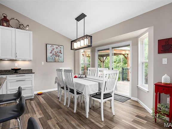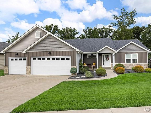 Beautifully maintained 7 years young 3 bed 2 bath split floor plan that is one of a kind. Your new home has great curb appeal with beautiful landscaping leading up to the front porch and in the back yard you will find a full tree line for privacy. The lot next door is common grounds giving you only one neighbor and extra space to enjoy. Did I mention the oversized deck that is 25x12 and 12x12 with a pergola that stays too (it has electric ran to it for a fan )! To access the lower-level walk out you can use your one-of-a-kind spiral sturdy staircase. Inside your home is a split floor plan. You will find vaulted ceilings which create an open and airy feel. While the custom kitchen features custom cabinets with pull out drawers, soft close, center island, granite countertops, and a smudge-proof stainless-steel appliances that stay with the home. The primary suite has vaulted ceilings, walk in closet, adult height cabinetry and double sinks. On the main floor you will also find your oversized laundry room with a wet sink off the kitchen. The 3-car garage is equipped hot and cold water ran to it to be able to wash your car. In the basement you will find 2 rough-ins one for a full bath and another for a full kitchen (mother-in-law quarters). The beautiful walk out takes you to an oversized patio of 20x12 where you can enjoy privacy it is a great place to unwind. The sellers also have a dog electric fence and two collars that they will leave. Come check it out before it is gone!