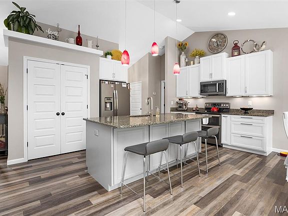 - Ceiling Fan(s), Custom Cabinetry, Dining/Living Room Combo, Double Vanity, Eat-in Kitchen, Granite Counters, Kitchen Island, Kitchen/Dining Room Combo, Open Floorplan, Pantry, Recessed Lighting, Tub, Vaulted Ceiling(s), Walk-In Closet(s)