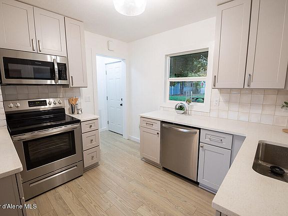This fully renovated home is just 1.5 miles from downtown Coeur d'Alene. Situated on an over sized lot, the home has new HVAC, new roof, new electrical, and new plumbing. The kitchen features custom cabinets, quartz counter tops, and new vinyl windows fill the space with light. Enjoy the privacy of an en suite primary bedroom on the second floor and the convenience of an attached 2-car garage. With a huge fenced backyard, this property is a perfect blend of style and function, offering contemporary living in a prime location.