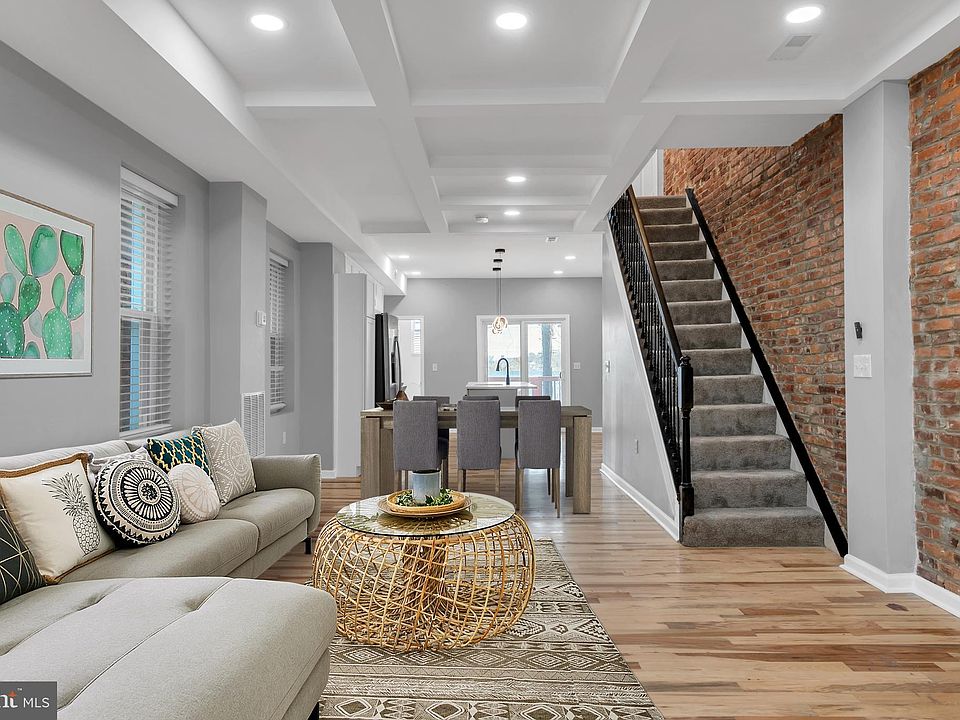 Get ready to fall in love with this gorgeous end-unit townhome hosting design-inspired updates. Upon entrance you are greeted by coffered ceilings, recessed lighting, an open floor plan with exposed brick wall and brand-new wood flooring. A spacious living and dining space flowing into the beautifully renovated kitchen which features granite countertops and breakfast bar, custom lighting, stainless steel appliances and modern white cabinets with a half-bath finishes out the main level. Just off the kitchen is the deck overlooking and accessing a delightful patio inside a completely fenced rear yard. The upper level includes 3 spacious bedrooms and 2 full bathrooms where the attention to detail was not compromised. Stacked washer and dryer, a full bath, luxury vinyl floor and an art deco chandler adore the hallway. Beautiful, finished basement with bonus room and a full bathroom. Easy on street parking! WELCOME HOME!