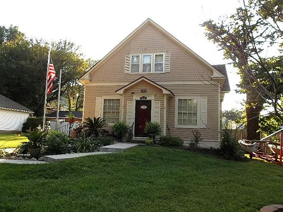 Great home in beautiful historic neighborhood. Beautifully landscaped with new driveway and sidewalk. The house maintains its original charm with hardwood floors and woodwork. Kitchen and bathrooms have been updated. Kitchen has newer cabinets and countertops. The house features extra living space with an oversize living room/dining room plus room for an eat-in kitchen. There is also a sunporch off of the master bedroom and an extra room upstairs for an office or craft area. House has new paint and a newer roof. The house also has a double garage with opener and a basement storage area/storm shelter.