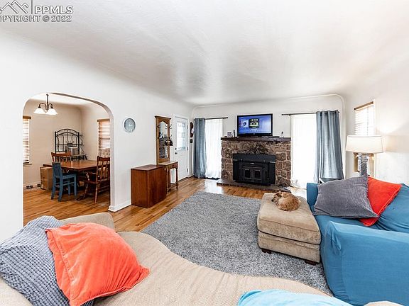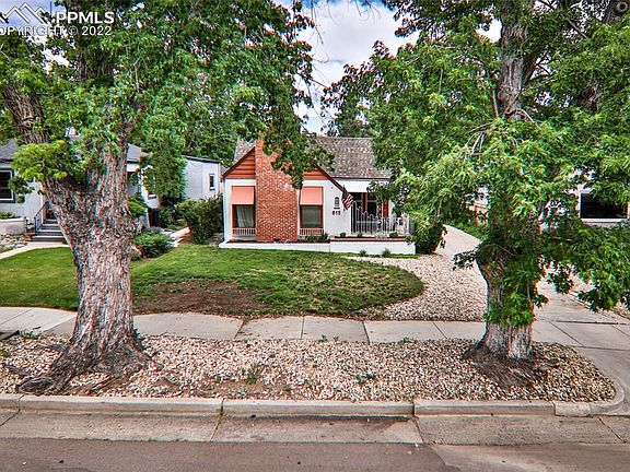 Wonderful 1939 built home located near Downtown Colorado Springs, Memorial Hospital, Olympic Training Center, schools, parks, shopping and so much more! The front of the home has large trees, two built-in planter boxes, fun retro railings and a covered porch. Step inside to a large living room with cove ceilings, arched doorways, a wood-burning stove with an insert and hardwood floors. The attached dining room also has hardwood floors and a cove ceiling. The updated kitchen has ample cabinetry and an original built-in that is perfect for spices and such. There are three bedrooms on the main level, all with wood floors. The master bedroom has a walkout to the covered rear patio. Updated bathroom on the main level has two sinks. In the basement there is brand new carpet, a recently redone bathroom with a walk in shower, new vanity with a farm sink, updated lighting and extra storage. The fourth bedroom has a walk-in closet plus a wood-burning fireplace. You could also use this room as a family room. There is a 'flex-room' as well that could be used as an office/bedroom/craft room or extra storage. Step onto the large covered rear patio... perfect for grilling or enjoying a beverage (or two)! The large backyard is fully fenced with another built-in planter box, large shed, flowering bushes, nice sized trees privacy plus RV parking in the rear off of the alley. There is also a two car garage.