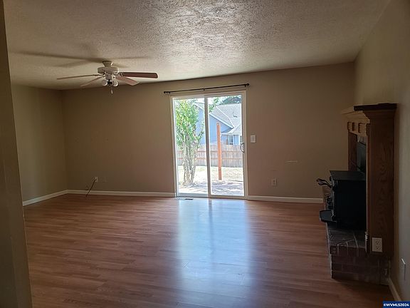 This charming home is situated in a peaceful town and sits on a spacious 0.23-acre lot. It features a large, fenced backyard with plenty of room for gardening, outdoor activities, and family gatherings. An attached garage provides extra storage, parking, or a versatile workspace. The inviting back patio is perfect for relaxing on warm summer evenings or gathering around a cozy fire pit during the colder months, all while enjoying the peaceful surroundings. For added comfort, a wood stove insert offers