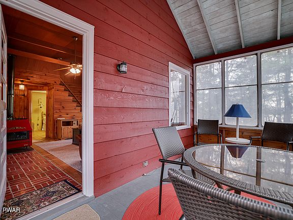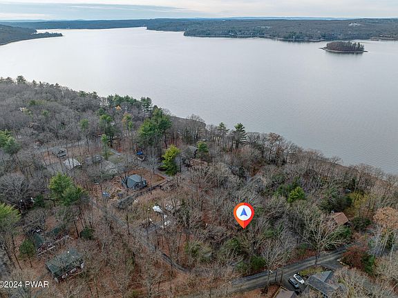 2nd Tier Gumble Chalet on Lake Wallenpaupack with lake views and a detached 2 car garage! Home offers an open floor plan, 2 bedrooms plus loft, 2 full baths, screened porch, hardwood floors and more! Shed, wooden patio, private setting and just a short walk to Lake Wallenpaupack and the community lake access area. Beautiful lake views and sunsets from this home!