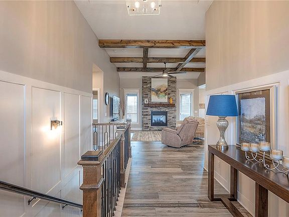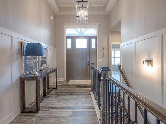 Builder’s Personal Home LOADED with upgrades! This 4 bed 3 bath 3 car garage reverse ranch located on a treed lot in a cul-de-sac with lots of wildlife makes you feel like you’re living in the country! Entry and main living area feature soaring 12ft ceilings, tile throughout the main living area, kitchen, laundry, second bedroom (currently used as an office) and guest bath. Main level guest bath has shower base with tiled walls, custom vanity w/ Cambria counter top & concrete vessel sink. Main living area is decorated w/ stained beams, stone floor to ceiling see thru gas fireplace with real wood mantel. Kitchen features Cambria countertops, 9ft island, Monogram stainless steel appliances, gas cooktop, concrete farm sink, custom kitchen cabinets, with undermount lighting, partial glass with lights, spice drawer, large walk in pantry with wine fridge & with grocery door to access from the garage and unload them directly into the pantry! Walk from the dining room out onto a screened in covered deck composite decking, watch your favorite sport teams outside all year round while keeping warm by the fireplace! Steps lead you all the way down to a stamped concrete walkout patio area. Master bedroom is carpet with LVP accent wall, Master bath has an extra large double vanity w/ Cambria counter top, concrete sinks, walk in closet & tiled shower and floor. Downstairs walkout basement has 12ft ceilings & LVP throughout, 2 bedrooms, 1 bath, rec area w/ living room & enough space for a pool, foosball, or air hockey table. Possibilities are endless to create your dream family cave. Wet bar, w/ custom cabinets w/mirrored glass doors, & box built for pendant lighting. Tons of storage in furnace room with built in shelving and a home gym area in the extra storage room. Built in sprinkler system and painted garage flooring. Don’t miss out on this showstopper with ALL the EXTRAS!