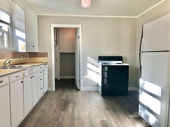 2 bedroom, 1 bathroom single family home located on a quiet street in a great neighborhood. 944sf, covered carport and a large, locked shed for storage and hobbies. Side door from carport walks in to the laundry room with W/D hookups. Both bedrooms have doors to the back covered patio and fenced back yard. Additional small shed in backyard for storage. Home has original built-in shelving and cabinets and hardwood floors. Baseboard heat in Living Room. Fireplace is not to be used. Small pet ok with approval and additional deposit of $500.00 per pet.