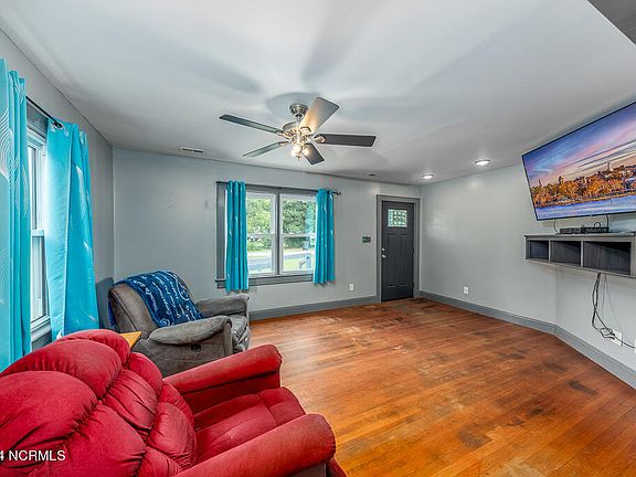 Welcome to 815 Neuse Drive, where you can enjoy serene river views from the comfort of your front porch. This charming two-bedroom, one-bathroom home is located just minutes from historic downtown New Bern and offers a warm and inviting living room, perfect for relaxation. The kitchen comes equipped with all the needed appliances and features a stylish glass block backsplash. Adjacent to the kitchen, you'll find a convenient mudroom. Enjoy the versatility of the Carolina room, offering extra living space with abundant natural light and access to the back deck, ideal for outdoor gatherings and relaxation. The fenced-in backyard also includes a detached storage building for added convenience. With recent updates to the windows, plumbing, and electrical systems all less than six years old, this home is move-in ready. Plus, there are no city taxes! Located with an easy drive to MCAS Cherry Point and the NC Crystal Coast, this home blends charm, functionality, and convenience.
