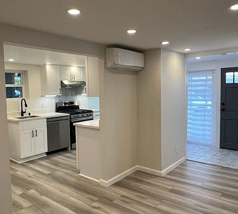 Newly renovated, charming 2 bedroom apartment. Located on the mid-Peninsula in Belmont. Close to shopping, transportation and restaurants. Belmont has highly rated and sought after public schools. *Tiled entryway - room for a bench of cabinet *Kitchen includes new cabinets, new quartz counters, refrigerator, dishwasher and stove. *Breakfast nook *Freshly painted and with new flooring throughout *New entry and bathroom tile *Gorgeous marble top vanity sink in bathroom. *Rain shower head and hand held shower head *New blinds - top down/bottom up style. *All new double paned windows. *Brand new washer/dryer in unit *one off-street parking spot is available. *combo heat and air-conditioning unit *recessed lighting Owner pays for water. All other utilities are there renter's responsibility. No smoking, non-aggressive and well trained pet welcome.