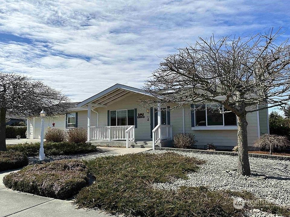 Lovely home has large living room with propane fireplace, inviting entry, large formal dining with coved ceiling, office with French doors, low maintenance landscaped yard, in one of Sequim's nicest little communities: Oak Tree Village. Recently painted interior, lots of storage, through out house and garage the floors are all level for easy access (for wheelchair or walker), other ADA conveniences. Skylights make this home light and bright. Quiet friendly neighborhood.