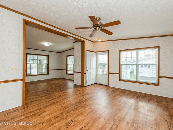 Spacious double-wide mobile home in the beautiful Oakbrook Estates Community! This 1,391 sq. ft. home features vaulted ceilings, new luxury vinyl flooring, new carpet, new front door, creating a bright and welcoming open floor plan. With 3 generously sized bedrooms, 2 full bathrooms, a living room, dining room, mud room/laundry room, and a spacious kitchen, this home has everything you need for comfortable living. The primary bedroom includes an extra-large en suite bathroom with a walk-in shower, providing a touch of luxury. Enjoy the convenience of an attached storage space and covered side apron parking for 2+ cars. Ideally located near a new hospital, shopping, dining, walking/biking paths, YMCA, and Metra. Oakbrook Estates is a peaceful 55+ community (with exceptions allowing 40+), complete with a scenic pond for residents to enjoy. This is a fantastic opportunity for low-maintenance, vibrant living in a prime location!