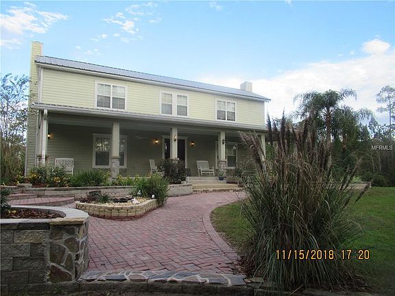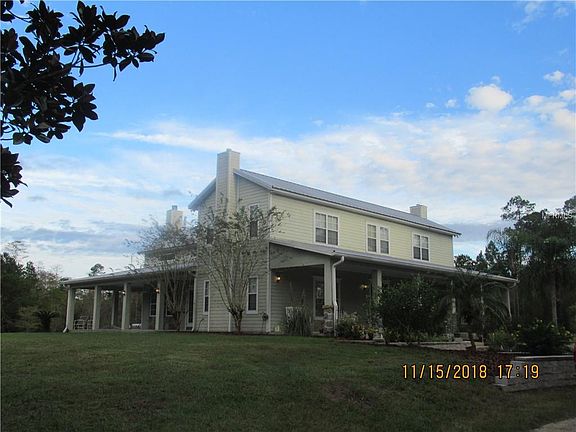 PRICE BELOW RECENT APPRAISED VALUE! Impressive custom home! Recently landscaped county ESTATE. Enjoy the awesome porch on this ALL block with Hardieboard 2 story Florida Executive estate. Enjoy you OWN stock pond and abundant wild life from the large warp around porch. Very private area yet so close to schools and shopping. This wonderful home offers 3 fireplaces for those cool winter nights and the room are SO VERY LARGE! The chief of the house can enjoy newer stainless appliances, solid surface countertops and oversized gas stove top. The home features copper plumbing, a METAL roof (home and Detached garage) High volume ceiling though out, Double pane upgraded windows, 3 showers in the huge mater shower, master closets doubles as a safe room, 200 gal underground gas tank, HEART OF PINE floors, on demand gas water heater, 3 total fireplaces (2 gas- one wood) and all bedrooms has private baths and walk in closets. Just too much to list, a must see, with lots of storage. For the man of the house a seperate a 1700 Sf garage (2 story) complete with MAN CAVE. Located half way between THE WORLD FAMOUS Daytona Beach and Orlando attractions. Enjoy the peace and quiet, bask in the sun or enjoy excitement of the Orlando life. Welcome home , recent appraisal priced way below for quick sale.