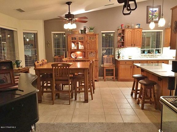 SPECTACULAR LOCATION on .41 acre offering PRIVACY and VIEWS of Mingus Mountain! If you like to entertain, then THIS HOME IS FOR YOU! Beautiful backyard with interior stucco walls, storage shed (with electric) and multiple patios for your outdoor enjoyment. Gorgeous landscaping w/Grassy play area and mature shade trees. Outdoor kitchen w/Gas BBQ, Fridge and a Gas Firepit for those chilly Prescott evenings! Spacious Great Room floor plan offers vaulted ceilings and gas fireplace. Updated kitchen w/breakfast bar, tile back splash, Corian counters and walk-in pantry. Large laundry room with shelving. The 3-car garage offers a utility sink and additional cabinetry. So much to LOVE about this wonderful home! MUST SEE to appreciate the location and special features. Best of all, NO HOA DUES!