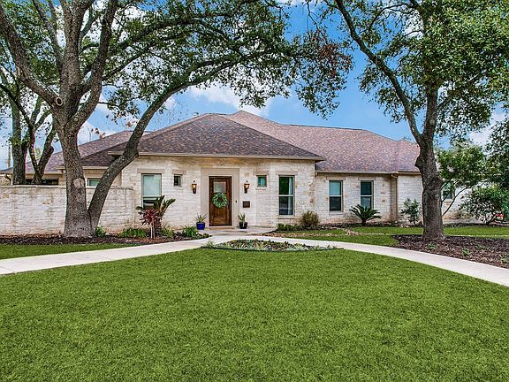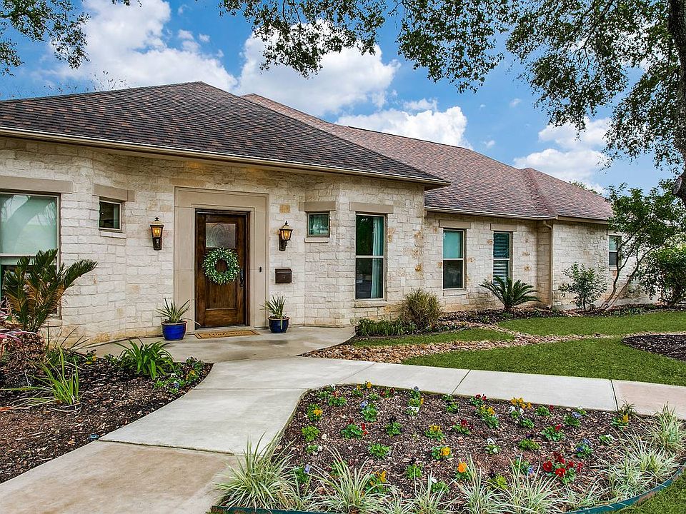 Texas Modern contemporary with spectacular stacked stone exterior on impressive elevated corner lot in Terrell Hills. Luxurious interior presents an open concept design tailored for entertaining yet balanced for everyday living. Stunning top-of-the-line gourmet kitchen with gathering island, sleek granite counters, herringbone marble backsplash and professional grade appliances. Secluded main-level master retreat opens to private patio, with spa quality bath that features separate granite-topped vanity areas, large walk-in shower and two oversized walk-in closets each with built-in storage. Flexible, functional floor plan presents multiple opportunities for either four guest bedrooms or work-from- home spaces plus a separate media/game room. Wide covered veranda stretches across the rear of the house and opens to a fabulous, private fenced yard for exciting outdoor living. The attached oversized two-car garage includes a future pool bath, walk-in safe and abundant storage.